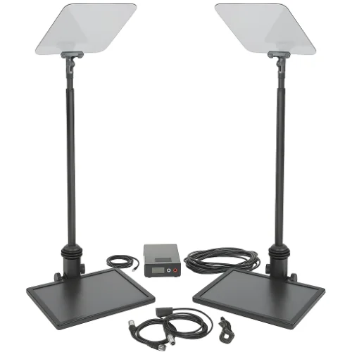 Featuring on camera teleprompter systems for pre-recorded script reading. These teleprompter systems make talking to a camera a breeze and minimize the appearance of reading a script as the teleprompter glass is directly in front of the camera lens.